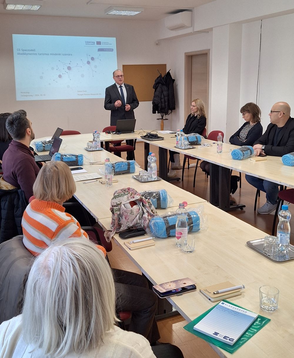 2026.02.18 - Szerda délelőtt az Interreg Central Europe program forrásaiból támogatott CE-Spaces4All című, CE0100331 azonosítószámú projekt szakmai workshopján Pácsonyi Imre, a Zala Vármegyei Közgyűlés alelnöke köszöntötte a résztvevőket. A rendezvény keretében tájékoztatták a jelenlévőket a pályázatban kidolgozott közös stratégiáról, ismertették a cselevési tervet és bemutatásra került az elkészült turisztikai csomag is.