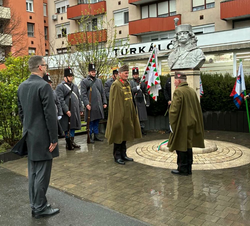 2026.03.27 - II. Rákóczi Ferenc fejedelem születésének 350. évfordulójára emlékeztek a Keresztény Nemzeti Koalíció szervezetei csütörtök délután. A Mindszentyneumban rendezett ünnepség és emlékkiállítás után az esemény résztvevői hagyományőrzők vezetésével vonultak át a Rákóczi szoborhoz. A koszorúzáson Zala Vármegye Önkormányzata képviseletében Rétvári Róbert alelnök hajtott fejet a szabadsághős emléke előtt.
